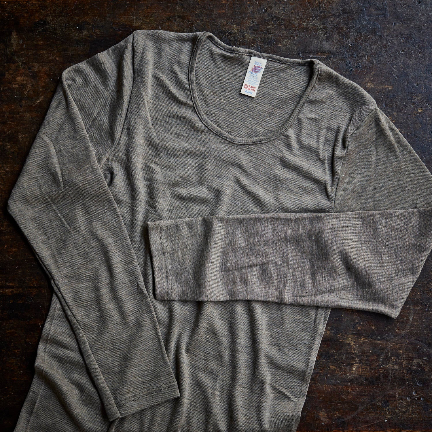 Womens Merino Wool & Silk LS Top - Walnut